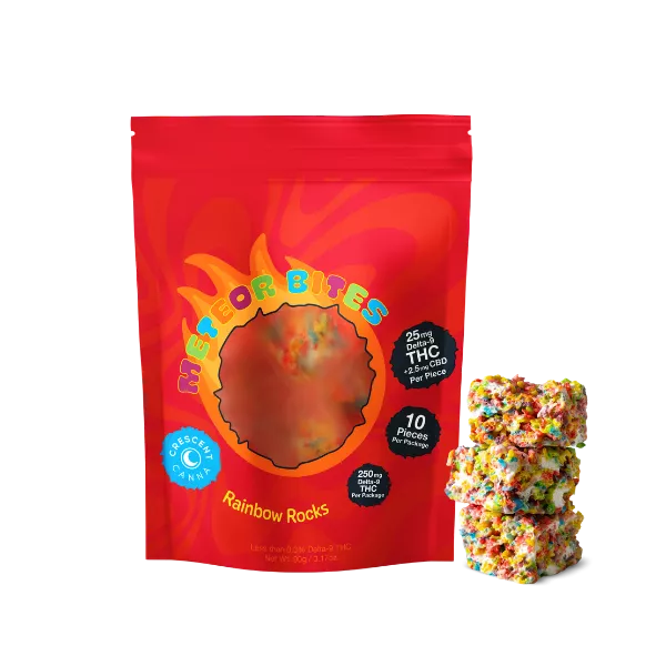 Buy Meteor Bites THC Cereal Bars UK Online. Get baked with baked goods and shoot for the stars with Meteor Bites THC Cereal Bars! These high-potency THC cereal bar edibles will take you to new heights of relaxation, with 25 mg of THC and 2.5 mg of CBD in each piece. Sweet, gooey, and delicious, Meteor Bites THC Cereal Bars are crafted with gooey melted marshmallows and yummy fruity cereal.